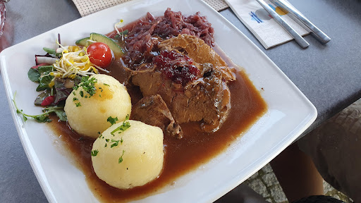 Read moreAfter a 11km hike through the first near the restaurant we stopped here to get some much needed food and a sit down. A table was quickly provided and we placed our orders shortly after. My wife and I both got the same dish, wild boar with potatoes dumplings (kloße) cooked apple & red cabbage and a small side salad. Gravy too. It was excellent, I cleaned up my plate! My mother in law had the Zander which she said was excellent too. For payment they take cards & cash, there is a small parking lot too. Would certainly go back...