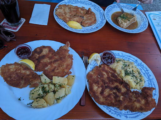 Italienischer Kellner und die Küche waren sehr überfordert, trotz halber Tischbelegung. Als Vorspeise Obazda mit zwei Brezeln, Brezeln kamen sofort, Obazda 10min später. Als Hauptgericht haben vier von uns Schweinebraten und einer Leberkäse mit Spiegelei und Bratkartoffeln bestellt. Nach 10 min waren die Braten da, 30min danach kam der Leberkäse, was für ein so einfaches Gericht eine frechheit ist. Das bestätigt aber auch die Gerüchte, dass alles fertig vorbereitet (seit Stunden warmgehalten) raus geht und bei frisch zubereitetem Essen (Spiegelei und Bratlartoffeln) die Küche ins stocken kommt. Trozdem kann man an einem Tisch nicht die Gerichte mit 30min abstand servieren. Ein Krautsalat wurde zu einem der Braten auch mitbestellt, der nie gekommen ist. Beim bezahlen wird man angelogen das man es nicht gehört habe. Dabei hat der Kellner bei der Bestellung den Wortlaut "mit Krautsalat" wiederholt. Essen war allgemein lauwarm und übersalzen. Nochmal kommen wir nicht.