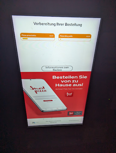 Erstmalig so einen Pizzaautomaten genutzt. Die Erwartungen sind natürlich nicht mega hoch, aber ich muss sagen, dass ich äußerst positiv überrascht war. 2 Pizzen auf einmal bestellt. Mit Kreditkarte ruckzuck bezahlt und in unter 4 Minuten kamen die Pizzen heiß im Karton raus. Geschmacklich waren diese echt gut. Gut belegt, Teig schön fluffig, gut gewürzt. Deutlich besser als allgemein bekannte Tiefkühlprodukte. Und v.a. deutlich besser als die Pizzen, die es im TI gibt, wo ja zumindest so getan wird, als wären diese frisch zubereitet. Sollte vor allem TI zu Denken geben, aber gut.