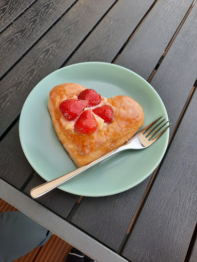Read moreEin ganz kleines Cafe mit bei mit 3 Tischen draußen, wobei jeder davon wackelt, und mit zusammengefalteten Papier , Bierdeckel stabieliesiert wird... der Kakao war wie immer lecker, der Milchkaffee war nicht der Brüller...leider zu wässrig... die Bedienung war bei der Bestellung nett und freundlich, doch wo ich das Tablet um die Ecke um auf denn Tisch stellen wollte , sagte sie nur - das kommt in denn Geschirrwagen... dann musste ich um denn laden herumlaufen , mein " heißgeliebten " Mundschutsch anziehen um das Tablet in denn Wagen zu...