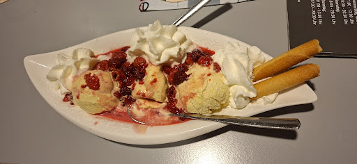 Read moreOrdentlicher Gesamteindruck, Einrichtung etwas achtziger, schaut aber aus wie neu. Bedienung unkompliziert, flott und freundlich, weist bereits im Vorfeld auf Verzögerungen hin und gibt sämtliche relevanten Infos von ganz allein. Das ist wirklich selten geworden und deshalb doppelt erfreulich. Das Essen qualitativ wesentlich besser, als erwartet. Putenschnitzel überraschend zart, die Currywurst gut gegrillt, Sosse sehr lecker und die Pommes knusprig und gut. Lediglich das Lendensteak war nicht mehr medium und dadurch zäh. Essen und Getränke kamen trotz, daß einige große Gruppen gleichzeitig bestellt hatten, recht schnell. Unsere Hunde hätten zwar gerne etwas Wasser zum Trinken gehabt, aber wir waren sehr dankbar dafür, daß wir unsere Zwerge auf die Bank setzen durften, die natürlich mehrlagig mit Decken und Jacken geschützt war, sodass kein Mobiliar mit den Hunden in Berührung kam. Insgesamt eine gute Wahl für ein unkompliziertes Abendessen mit solider...