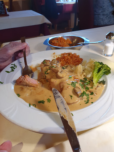 Read moreAufgrund der schönen Lage mit dem Biergarten bei heißem Wetter gerne besucht, aber leider keine Empfehlung für Schifferstadt. Die Gerichte sind recht fettig, damit kann man ja vielleicht noch leben und eben das Fett liegen lassen. Aber hinsichtlich der Sauberkeit lässt es mittlerweile auch zu wünschen übrig. Da hängen festgetrocknete Reste am Salz- und Pfefferstreuer. Der Knaller war, als ich auf etwas hartes Biss und dachte vom Zahn wäre ein Stück abgebrochen. War ein Stück Knochen. Habe das der Bedienung zunächst beim Abräumen gesagt, dann später beim Zahlen fragte mich der junge Mann doch glatt, ob es im Gyros oder im Hackfleisch drin war. Was ändert das daran für mich? Keine Entschuldigung oder sonst was "Versönliches" hierzu. Dann schaute er auch noch grimmig als ich kein Trinkgeld gab und sagte nichts mehr dazu. Für das viele Geld - denn günstig isst man dort nicht - auch noch so was. Nein danke, habe ich als Kunde nicht nötig. Da gibt es im Umkreis doch bessere...
