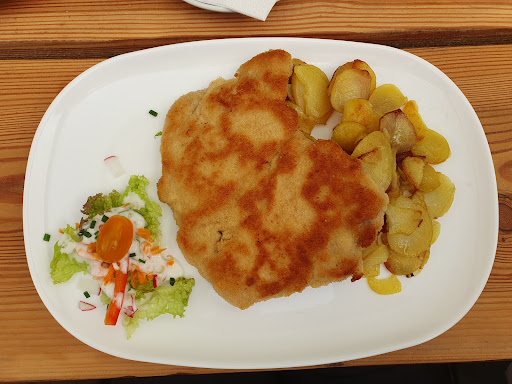 Das Essen war ok, Standard, sehr einfach und die Portionen eher klein, die Preise für das, was geboten wird, deutlich überhöht (Bsp. Flammkuchen mit Lachs für 18,90€ was am Ende eher einer Vorspeise gleicht). Ich hatte das Schnitzel mit Bratkartoffeln, dazu die Champion-Rahmsoße für 19,50€. Bratkartoffeln waren ungewürzt, ohne Schinkenwürfel, Zwiebeln oder sonstiges, einfach "blank", dazu ein Mini-Portiönchen Salat. Schnitzel war gut. Die Soße war ok, Pilze aus dem Glas, wenig Würze.