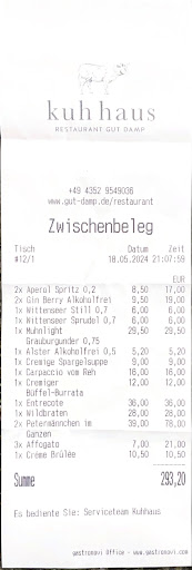 Read moreNach, gefühlt, fast 15-20 Jahren, endlich wieder im Kuhhaus gewesen...😀 Ich habe mich, auf dem Weg nach Damp, immer wieder gefragt, ob das Kuhhaus jemals wiederbelebt werden wird. Schön, dass es auf so spektakuläre Art und Weise gelungen ist. Das neue Übernachtungskonzept ist eine tolle Idee und ein ganz klarer Vorteil gegenüber dem reinen Gastronomie-Konzept... So weit, so gut... Kommen wir zum wesentlichen... Ich habe dort vor ein paar Tagen mit meiner Familie gegessen (ein vegetarisches Gericht, Tomahawk-Steak vom Duroc-Schwein, Dessert, Suppe, Aperitif und einige andere Getränke...). Wir sind uns alle einig gewesen, dass das Essen absolut vorzüglich gewesen ist...!!!!👍🏻 Die Karte ist sehr klein gehalten, da braucht z. B. ein Gast, der ein vegetarisches Menü vorzieht, sich keine Gedanken über die Auswahl zu machen... - es gibt nämlich nur eines... 😉 Das eine "kleine" Karte natürlich dem Qualitätsgedanken geschuldet ist - logisch... Aber 3 verschiedene (vegetarische) Gerichte dürften es schon gerne sein... Gutes Essen hat selbstverständlich seinen Preis, der, ähnlich wie der Salat, allerdings schon ganz schön knackig ist... Wir waren mit 6 Personen dort, was am Ende dann mehr als 300€ erzeugten... - und nein...wir hatten nicht die teuersten Gerichte und haben auch nicht die Vorspeisen- oder Dessert-Karte geplündert...😉😉 Übertrieben gesagt - Sterne-Preise ohne Sterne-Köche... Bei allem Respekt vor der handwerklichen Leistung und der guten Qualität der Lebensmittel - ...das Preis Leistungsverhältnis passt, meiner Meinung nach, trotzdem nicht so ganz... Allerdings bekam man, anhand der Fahrzeuge, die vor dem KuhHaus parkten (alles was gut und sündhaft teuer ist...), auch einen guten Eindruck davon, wer die gefühlte Zielgruppe des Restaurants bzw. vermutlich des ganzen Betriebes ist... Meinen Besuch für 2022 habe ich damit gehabt und kulinarisch sehr genossen und werde bestimmt auch irgendwann wiederkommen - sicherlich aber nicht...