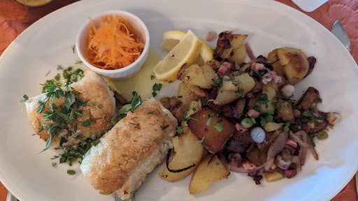 Empfang und erster Eindruck auf das gediegene Ambiente mit hübsch eingedeckten Tischen und brennendem Kamin ließen unsere Herzen höher schlagen und die Vorfreude auf einen schönen Abend steigen. Die Bedienung erschien auch rasch an unserem Tisch, gab uns die Speisekarten und machte uns mit den neben der Karte zur Verfügung stehenden Speisen bekannt. Wir entschieden uns beide für das mündlich angebotene Lengfischfilet mit Möhrensalat und Bratkartoffeln. Die Frage, wie der Möhrensalat angemacht sei, konnte leider nicht beantwortet werden. Den Preis für dieses Gericht kannten wir nicht, vertrauten jedoch zuversichtlich auf ein angemessenes Preis-/Leistungsverhältnis. Dann nahm das Schicksal seinen Lauf. Mein alkoholfreies Bier wurde fertig eingeschenkt in einem 0,3 Bierglas schaumlos geliefert. Das fand ich ungewöhnlich. Ich wusste also nicht, um welche Sorte es sich hier handelte und denke auch nicht, dass dieses Bier aus einem Zapfhahn kam. Meine Suppe als Vorspeise kam in einer kleinen Kaffeetasse daher, war aber schmackhaft. Kurz darauf wurde sogleich der Hauptgang serviert. Es handelte sich um zwei kleine Fischfilets, die sich als recht geschmacksneutral erwiesen. Der Möhrensalat, der sich in einem kleinen Schälchen befand, wirkte und schmeckte – vorsichtig ausgedrückt - nicht hausgemacht. Jeder kennt diese Möhrenschnipsel, die zumeist eine Salatbeilage optisch begleiten. Die Bratkartoffeln waren nicht gleichmäßig, jedoch sehr stark gebraten und recht fettig. Alles in allem ein lieblos angerichtetes Gericht, was viele einfachen Wirtshäuser deutlich besser hinbekommen. Ein Preis von 36,00 € für dieses Gericht empfinde ich als Dreistigkeit. Inzwischen waren weitere größere und kleinere Gästegruppen eingetroffen, und es herrschte beim Bedienungspersonal ein äußerst geschäftiges Treiben. Wir mussten uns inzwischen auch in eine Art Unsichtbarkeit verwandelt haben, denn von uns wurde keinerlei Notiz mehr genommen. So sehr wir uns auch bemühten und versuchten, Blickkontakt zu den Bedienungen aufzunehmen, blieben wir unbeachtet. Vielleicht hätten wir auch noch ein Dessert bestellt, wenn uns eine Dessertkarte vorgelegt worden wäre, und so beschränkten uns auf die Order zweier Digestive, die wir nur durch lauten Zuruf bei einer vorbeisausenden Bedienung platzieren konnten. Zusammenfassend bleibt nur zu sagen, dass uns das Hauptgericht sowie der Service und damit auch das Preis-/Leistungsverhältnis sehr enttäuscht haben. Wir haben dennoch ein Trinkgeld gegeben, was jedoch nicht mit einem Dank...