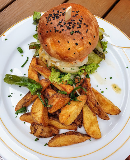 Read moreIm Zuge eine Wanderung waren wir in dem Kurhaus essen. Die Speisekarte war sehr übersichtlich und man war sich sehr schnell ein einig war man haben wollte. Das Gebäude wurde nach der Flutkatastrophe 2021 wieder Instant gesetzt und dementsprechend auf etwas modern gemacht. Sobald man die obere Etage besucht weil dort das WC ist trifft man auf die 70/80ger Jahre. Alt gebackene Gardinen und die WC sind aus dem selben Jahrzehnt. Sitzt man wieder unten fehlt ein wenig das Hintergrund Gedudel. Es läuft keine Hintergrund Musik und dadurch sind die Gespräche mit den Freunde etwas gehemmt da man auch die Gespräche der anderen mitbekommt. Das essen war von der Zubereitung gut. Wir hatten den Haus Burger , den Wildschwein Burger sowie 2x das Schweine Medaillon. Zur Vorspeise gab es noch eine Suppe und Bruschetta. Die beiden Burger waren super belegt und die Portionen haben sehr satt gemacht. Bei den Medallions waren es leider etwas zu viele Kartoffeln zu dem Fleisch. Die Relation von Fleisch zu Kartoffeln hat nicht gepasst. Preislich waren wir mit 4 Personen inklusive Getränke bei ca 150 Euro