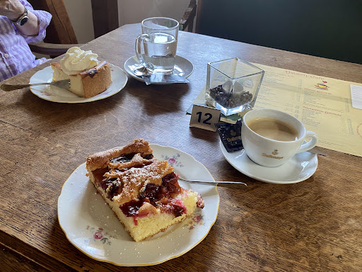 Read moreEigentlich möchte ich gar nicht so gerne über diese Café schreiben, sonst bekomme ich demnächst keinen Platz mehr. Dieses Bauerncafe in Moorsbach ist mein absolutes traum Café. Ich bin sehr verschnupft und probiere nicht gerne etwas Neues. Hier muss ich das da es nicht immer das selbe Kuchen Angebot gibt. Allerdings bin ich dafür auch dankbar. Sonst wüsste ich nicht was es alles für leckere Kuchen und Torten gibt. Ein Riesen Lob an den kreativen Bäcker. Und es sieht alles so fantastisch lecker aus. Mein Mann und ich bestellen zusammen in der Regel dreiStückchen und schieben uns die Teller hin und her um von allem zu probieren. Dabei sind die Stücke so groß, dass eigentlich eines reichen würde. Es gibt allerdings nicht nur Kuchen. Hier kann man auch leckere Eintöpfe, Gulaschsuppe und herrliche Salate mit Serviettenknödel bekommen. Morgens kann man hier auch frühstücken. Es cibt verschiedene Kaffee-,Tee- und Kakao Spezialitäten. Hier ist einfach alles lecker. Und das alles in einer ruhigen und gemütlichen Atmosphäre. Das Café ist ein hübsches und rustikales Bauerncafe. Es lohnt sich vor oder nach einer Wanderung hier einzukehren. Es liegt mitten im Nationalpark Eifel, Nähe der Burg Vogelsang. Das Personal ist so außerordentlich freundlich. Wer hier noch etwas hübsches zum dekorieren sucht ist hier ebenfalls richtig. Ich könnte hier jedesmal eine...