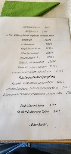 Wir waren am Sonntag in diesem Gasthof zum Essen. Wir bekamen ohne Reservierung einen guten Platz zugewiesen. Was mir negativ aufgefallen ist, es waren dort viele Einheimische ,die dort wahrscheinlich Stammgäste waren und diese sind von der Chefin des Hauses besonders freundlich begrüßt worden. Uns Auswärtigen,die einen Tisch daneben saßen hat sie jedoch nicht begrüßt und uns einfach ignoriert. Fand ich nicht sehr freundlich. Das Essen war okay. Der Preis ist meine Meinung nach viel zu überteuert. Selbst bei den steigenden Mehrkosten ist es langsam übertrieben für eine minikleine Roulade über 20 Euro zu zahlen. Ein frischer Salat war weder dabei, noch auf der Karte gestanden. Ich zahle bei meinem Hausmetzger für 10 große Rouladen ca 25 Euro . Wenn ich für 2 Personen 50 Euro zahle,nur für 2 Essen und 2 x 0,4l Getränke,da stimmt was nicht. In DM umrechnen ist zwar lachhaft. Aber wir Arbeitnehmer haben nie beim Wechsel den doppelten Gehalt bekommen........ 🤣😅100 DM für ein Mittagessen, lachhaft und traurig. Hätten wir draußen eine Speisekarte gesehen, wir wären wo anders hin. Aber dies ist nur ein Beispiel und nicht die Einzigen, die so überteuert sind. Fazit ,ich koche dann lieber selber oder nimm mir bei einem Ausflug was mit. Gott sei Dank hatten wir keine Kinder dabei.........🤣🤣🤣🤣🤣🤣🤣 200 DM für Familie mit 2 Kindern,ist doch lustig und dann wollen die noch ein Eis... .....🤣🤣🤣🤣🤣🤣🤣 Alptraum...