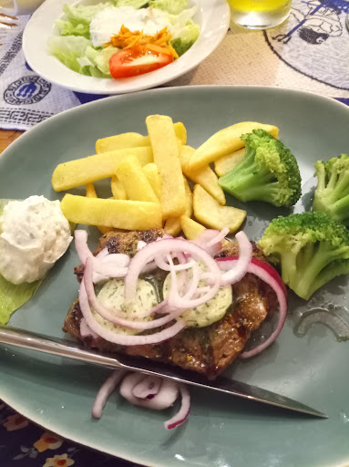 Read moreDie vielen guten Bewertungen wundern mich doch sehr. Das Essen war sehr, sehr schnell da... Was ja eigentlich positiv ist, aber wohl eher auf alles vorgekocht und dahingeschludert hinweist. Das Essen war dann auch leider sehr unterdurchschnittlich. Aber am schlimmsten war, dass das Geflügelsteak meiner Frau innen teilweise roh war. Ich hätte am liebsten alles zurückgehen lassen. Das war unser erster und letzter Besuch dort. Auch das Gyros, was nun wirklich Standard ist, war fade und schmeckte teilweise sogar alt, bzw. überlagert. Die Bedienung wirkte nur gehetzt und lächeln scheint dort nicht üblich. Absolut nicht...