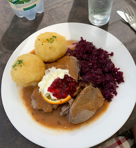 Read moreSchon seit eh und je die einzige Gaststätte in unmittelbarer Nähe des Schlosses. 37 Jahre ist mein vorheriger Besuch dieser Gaststätte her. Ich habe alles wieder erkannt, denn es hat sich kaum etwas geändert. Nur die Terasse wurde wieder hergerichtet und gestattet einen schönen Blick auf das Saaletal. Eine freundliche Kollegin zeigte uns die freien Plätze. Woher sollten wir auch wissen, dass sie eigentlich nicht kompetent war, denn die Kellnerin verwies uns nach einigen Minuten von den Plätzen ohne uns eine Alternative anzubieten. Gereizte Stimmung, denn der Laden war voll (Pfingsten). Im Lokal fanden wir dann noch einen freien Tisch. Das Essen wurde in akzeptabler Zeit serviert: Schnitzel und so etwas ähnliches wie Pommes, was vor Fett triefte und ungeniesbar war. Die Reklamation wurde mit Gelächter abgetan. Was soll ich...