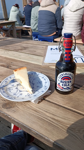 Read moreSamstagnachmittag, Kaiserwetter, 12 °C und ein entspannter Strandspaziergang, führten uns zu diesem Café. Der Plan war simpel, Sitzgelegenheit für 8 Personen zu finden oder Drinks to go herauszuholen. Die Sitzplatzsuche gestaltete sich bei diesem Wetter logischerweise etwas schwierig, was uns gleich an den Tresen brachte. Dort angekommen, warteten schon vier Gäste vor uns. Die aufgegebenen Bestellungen der Gäste waren einfach gestrickt, ebenso wie die Aufnahmefähigkeit der Bedienung hinter der Kasse. Eine Dame bestellte einen Lillet und Aperol, die Antwort darauf: "Lillet ham wa nich." Eine Minute später kam ihre Kollegin und widerlegte diese Aussage. Kassen-Karen hatte aber noch mehr Tricks parat, die sie nicht lange hinterm Berg halten konnte. So vertröstete sie den nächsten Kunden mit den Worten "Ich muss erstmal die Drinks machen". Man stelle sich diese Aussage mit einer tief auf der Nase sitzenden Brille und nach unten gezogenen Mundwinkeln vor. Stolz präsentierte sie dann ganz gekonnt ihr Talent und kippte Aperol in das Glas mit den TK-Beeren, welches für den Lillet vorgesehen war. Upsi. Kein Problem für unsere Karen, welche die Drinks nicht mal fertigstellte, sondern den Arbeitsplatz lieber wieder unverrichteter Dinge ihrer Kollegin überließ. Wer brauch auch schon zwei Drinks, wenn man dem nächsten Kunden für zwei Milchkaffees und ein Stück(chen) Pflaumenkuchen, 18 € abknöpfen kann?! Richtig, niemand, vor allem auch nicht unsere Petra-Profit. Inflation hin oder her, bei uns hat sich die Bestellung inzwischen auf 5 Flensburger beschränkt. Ich dachte hier, man könne sich diese im Anschluss selber aus dem Kühlschrank nehmen, aber nein, Karen macht das schon. Im Anschluss kloppt sie dafür aber auch stolze 5,40 € pro Büchse in ihr Abzocker-Klavier. Somit warens 27€ für 5 Bier. Das muss man sich erstmal wegtun. Selbst der Unterhaltungsfaktor erheitert hier nur noch geringfügig. Wir sagen also Dankeschön, auf nimmer wiedersehen und alles Gute den armen Teufeln, die sicher hierher verirren. Machs gut, Karen, auf dass du noch viele Lillets...