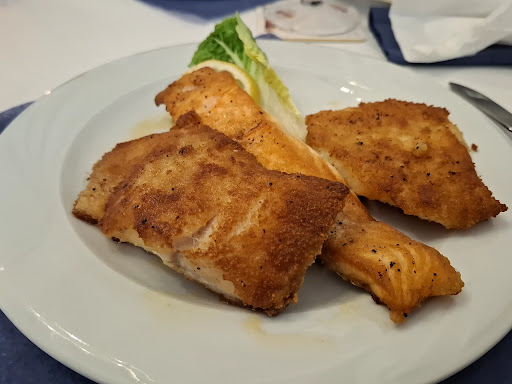 Es fing an mit der Spezi, diese war ganz offensichtlich mit Wasser gestreckt was mir schon komisch vorkam. Die Hummersuppe war Geschmacklich gut, allerdings komplett ungesalzen, 2 andere hatten ebenfalls Suppen bei denen das Gleiche der Fall war. Die Garnelen als Hauptspeise waren eine sehr große Enttäuschung, diese waren, im Gegensatz zu den dazugehörigen Bratkartoffel welche wie die Suppen ebenfalls zu wenig gesalzen waren, sehr salzig und zu lange gekocht. Die Garnelen waren komplett weich als würde man auf ein Stück nasses Brot beißen und dazu sehr fettig, definitiv zu lange gebraten! Der dazugehörige Salat wurde gar nicht erst serviert. Für ein Fischrestaurant und einem Preis von 16,50€ war das eine Frechheit. Einige der panierten Fische der anderen Personen schmeckten im Abgang nach Käsefüßen, was wahrscheinlich aufgrund von schlechter Margarine beim Braten zustande kam.