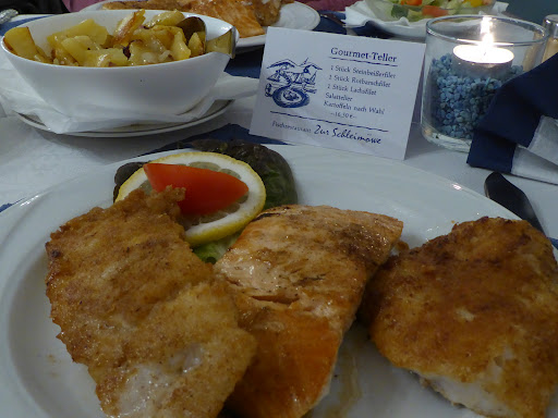 Nestled in the charming, historic village of Holm in Schleswig, the Schleimöwe fish restaurant occupies a delightful old school building, immediately setting the scene for a traditional experience. Be warned: its popularity is well-deserved! Attempting a walk-in, we found the place completely booked – a testament to its local reputation. However, the enticing aroma of freshly cooked seafood and the welcoming glimpse of its homestyle, maritime decor convinced us immediately to secure a table for the following day. It was a decision we didn't regret.
