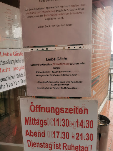 Read moreLeider absolut kein Vergleich mit chinesischer Asiatischer Küche. Ziemlich "eingedeutscht" und Fad. Gutes Altenheim-Essen aber keineswegs annähernd asiatisch. Ich habe während meiner Schulzeit in einem chinesischen Restaurant gejobbt und durfte die Unterschiede zwischen originalen Gerichten und denen die Verkauft werden kennenlernen. Während ich Verständnis dafür habe dass es schwierig ist in Deutschland authentisches Chinesisches Essen anzubieten , hat das Yen-Yen absolut nichts mit Chinesischem Essen zu tun. Die Angaben über Preise auf der Internetseite stimmen nicht mit den Preisen vor Ort überein. Es wäre sehr schön wenn man weniger auf Masse dafür auf Klasse und authentisch setzen würde. Die Erdnusssoße wurde so stark mit Kokosmilch gestreckt das sie gar nicht genießbar war. Wer gerne frittiertes isst, ist in jeder "Pommes-Bude" günstiger und schmackhafter dran. Eine Ergänzung zur Karte mit authentischen Gerichten wäre wünschenswert. In Bonn und Düsseldorf und anderem Städten gibt es ein paar Restaurants die dies anbieten und dafür gefeiert werden. Hoffentlich möchte das Yen-Yen irgendwann für seine Kochkunst gewertet werden und arbeitet an sich. Wenn man bedenkt das alleine ca 420€ durch das Buffet eingenommen wurde während ich dort war -in ca 1,5 Std.- sollte es wohl kein Problem sein anständige Produkte zu beschaffen und Gewürze zu nutzen. Trotz gestiegener Preise. Mein Besuch letztes Jahr vor der Energiekrise war keinesfalls besser, daher ist es dort Standard und nicht ein einmaliges Problem. In jeder Mensa bekommt man bessere...