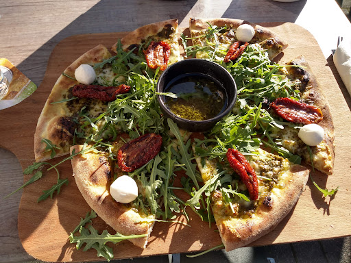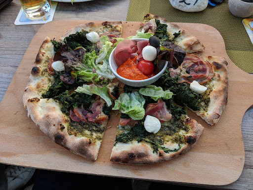 Dann kamen unsere Vorspeisen ( geschmacklich okay). Da war mein Glas schon leer. Der Kellner und ich vermute es war der Chef gingen dann mehrere Male an unserem Tisch vorbei. 5 Blicke konnte ich mitzählen, die sie in unsere Richtung warfen. Jedoch kam niemand auf die Idee uns weitere Getränke anzubieten. Nach einer Stunde Wartezeit kam dann unsere Pizza, nachdem ein anderer Gast den Kellner darauf aufmerksam machte, dass wir so lange warten. Es war ihm sichtlich peinlich, sodass es ihm schwer fiel uns anzusehen. Die Pizzen kamen dann auch direkt. Allerdings waren sie fast kalt und meine Pizza war nicht gar und durch irgendeine Flüssigkeitsansammlung echt durchgeweicht. Vermutlich standen die Pizzen schon einige Zeit fertig irgendwo herum. Eine Entschuldigung war nicht zu erwarten.