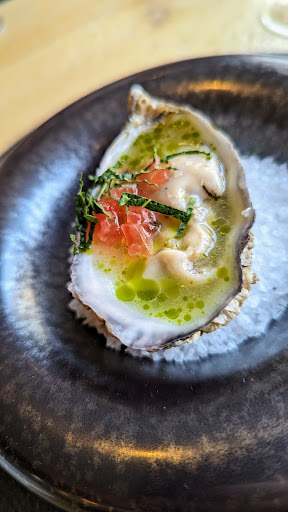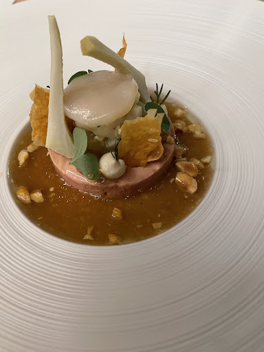 Die Gerichte waren schön präsentiert, wurden vom Service ausreichend erklärt und machten auf mich persönlich den Eindruck, ein nahezu maßgeschneidertes Verhältnis von Soße zum „Rest“ zu haben. Ich persönlich empfand, dass das Gänseleber Gericht etwas zu viele saurere Noten hatte (Essigvignarette, Artishoke) - aber das ist völlig individuell. Ansonsten war für mich jeder Gang ein Genuss. Wir saßen von 19 Uhr bis ca 22:30 Uhr für dieses Menü. Für Gäste, die sich in der ausführlichen Weinkarte verlieren, steht der kompetente Somelier bereit und berät & erklärt.