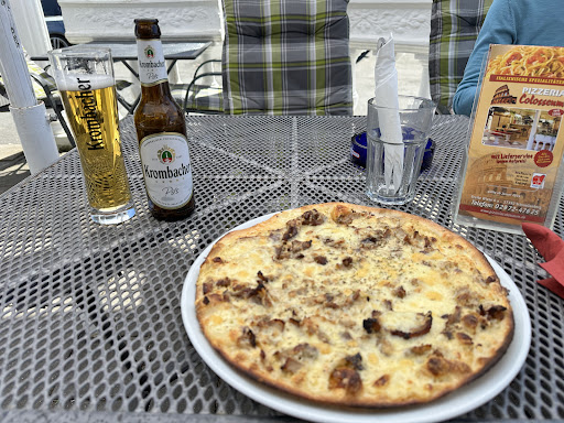 Pizza Colosseum ist eine Imbiss Pizzeria, komplett in Griechischer Aufmachung, Name, Dekor, Sitzmöbel usw.