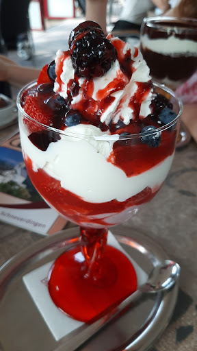 The ice creams selections are excellent and really stand out; staff and atmosphere is rather hit or miss. The incredible selection of different sundaes and warm food is amazing and of great quality. My particular favourites being dishes such as Crepe Waldfrucht, Eierlikor Becher and other sundaes with some traces of alcohol. The atmosphere is a little beige as there's not really much to write home about but works. The staff can be friendly but struggle a bit with communication which results in a few mistakes in orders and other issues. I recommend it to all locals of Schneverdingen particular for the impressive and delicious selection...