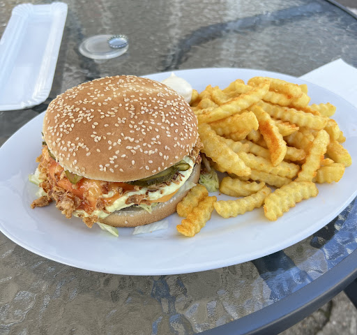 Read moreFür den schnellen Hunger zwischendurch ist dieser Imbiss in Ordnung. Es gibt alles, was das Fastfood-Herz begehrt. Hamburger, Cheeseburger, Nuggets, Currywurst und Pommes, Schnitzel, Hähnchen, kalte Getränke aus dem Kühlschrank und auch Kaffee. Ist zwar nicht besonders gemütlich da, aber welcher Imbiss ist schon besonders gemütlich? Wenn Andrang herrscht, ist es ziemlich eng da drin. Bei schönem Wetter kann man aber auch draußen an einem der drei Tische unterm...
