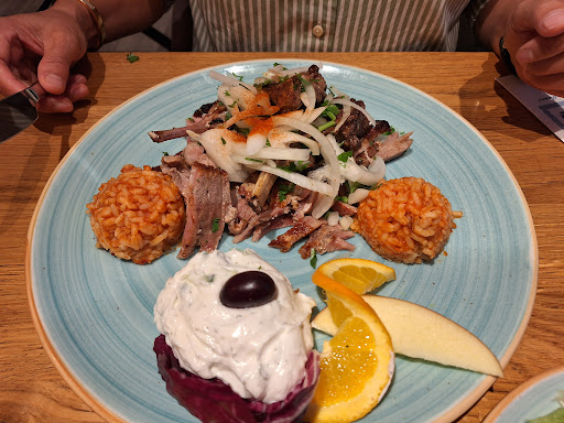 Read moreWir waren zum 1. Mal hier, am frühen Samstagabend, Anfang September, sehr voll! Der Salat vorweg schön frisch und lecker, als Hauptgericht den Apollon-Teller bzw. Souvlaki. Beides total lecker, das Fleisch und vor allem die Lammfilets sehr zart! Einzig die Atmosphäre und Lautstärke im Restaurant hat Großkantinenflair. An sich ist dieses Restaurant mit den Steinverzierungen an den Wänden recht hübsch, aber es fehlen schallschluckende Elemente wie Vorhänge oder Raumteiler. Es lässt keine Gemütlichkeit aufkommen, wenn alle Tische in einem großen Raum stehen. Auch sind die Abstände zwischen den Tischen sehr knapp, die Gäste sitzen mit max. 1m Abstand, Rücken an Rücken, zum Nebentisch. Aus anderen Restaurants sind wir wesentlich größere Abstände gewohnt, was sicherlich gerade jetzt richtig ist! Sicherlich geht das zu Lasten der Kapazität, aber uns war das hier doch ein...