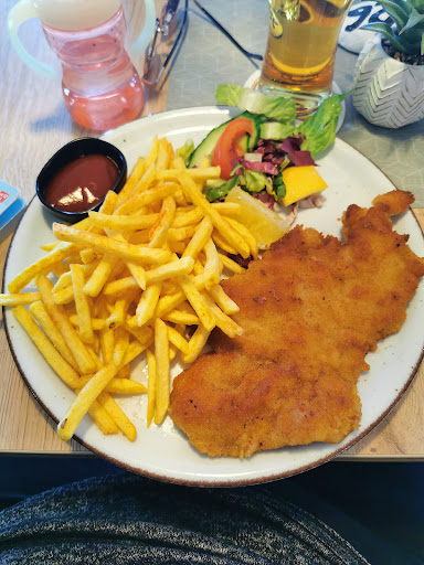 Die Inneneinrichtung des Restaurants ist wirklich gut, offenes Konzept, entspannend, große Fenster ermöglichen den Blick in die Natur. Der Service ist auf höchstem Niveau. Essen: Ich habe ein Wiener Schnitzel mit Pommes bestellt. Die Portion ist groß, reichhaltig. Die Dekoration ist fein, der Geschmack der Pommes ist ausgezeichnet, das Steak ist nahezu perfekt. Der Gesamteindruck ist gut. Ich kann es auf jeden Fall empfehlen. Ich werde auf jeden Fall wiederkommen. Alles Gute für deine...