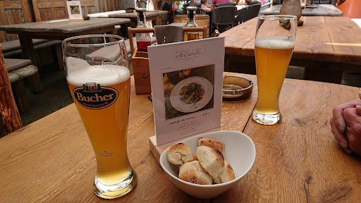 Read moreTisch wurde am Samstag reserviert für Sonntag, 12.00 Uhr. Wir sind pünktlich eingetroffen, Speisekarten innerhalb weniger Minuten bekommen, Getränke nach wenigen Minuten erhalten und dann (zwischen 12.10 und 12.15) Essen bestellt. Einen gemischten Salat vorab, zwei normale Pizzen und eine große (50cm) Pizza. Nach 40 Minuten haben wir nachgefragt, ob man denn jetzt den Salat bekommen könnte, dieser kam dann innerhalb von 5 Minuten. Die Pizzen kamen um 13.21 Uhr! Mehr als eine Stunde nach der Bestellung! Besonders ärgerlich war, dass die Personen am Nebentisch, die nach uns gekommen sind, mit der Nachspeise fertig waren, als wir unsere Pizza serviert bekamen. Zu der großen Pizza, die auf einem runden Holztablett serviert wurde, bekamen wir erst nach Aufforderung Teller. Mir ist schleierhaft, wie wir diese hätten essen sollen. Fazit: unsere frühere Stamm-Pizzeria wird und so bald nicht...