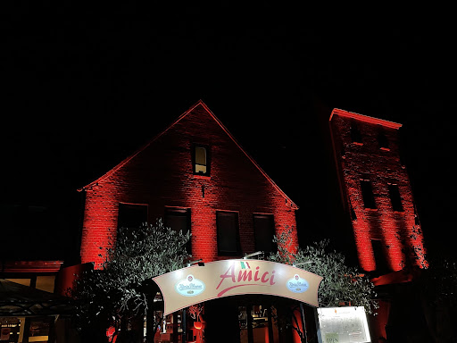 Bei traumhaftem Sommerwetter war es kein Wunder, daß die große Terrasse voll besetzt war, als ich gestern spontan zum "Amici" ging. Immerhin fand ich im Innenraum ein freies Tischchen im Frischluftbereich (Türnähe). Aufgrund des Andrangs darf man wohl nicht zu kritisch vermerken, daß die Wartezeit beträchtlich war: Nach ca. einer halben Stunde sollte ich bestellen, hatte aber noch nicht einmal eine Speisekarte zu sehen bekommen. Ein Pärchen am Nachbartisch nahm belustigt Notiz davon, denn die beiden warteten schon dieselbe Zeit, um zu zahlen... Man kann aber nicht sagen, daß getrödelt wurde: Die Chefin und die beiden assistierenden jüngeren Kräfte hatten die ganze Zeit voll zu tun. Der Chef war unentwegt beim Backen von Pizzen zu beobachten. Also: Es brummte im Restaurant, nur nicht auf allen Tischen in gleicher Weise.