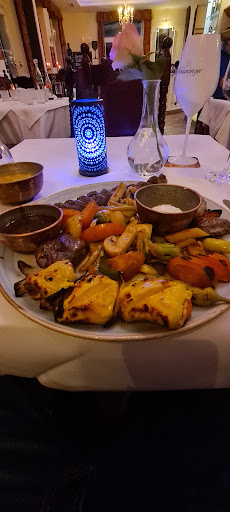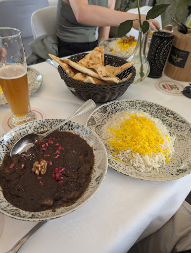 Wir waren am Muttertag hier zum Essen, insgesamt 7 Personen. Zunächst einmal möchte ich das Ambiente im Außenbereich beschreiben... Die Baldachin Zelte sahen tatsächlich sehr gut aus und haben das ganze orientalisch getoucht. Die Foto Leinwand jedoch war ziemlich verwirrend da es ein Bild aus (vermutlich) Istanbul ist. Der Iran hat so schöne Sehenswürdigkeiten da hätte man echt ein anderes Motiv wählen können... Das nur als Anregung... Die Stuhlbezüge waren leider mit Flecken überseht und wurden auch nicht ausgewechselt. Das Besteck kam wie im Biergarten in einem Besteckkasten an und das hat dann irgendwie nicht zu allem gepasst.