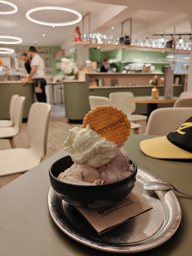 Read moreIch gebe hier fünf Sterne - alles was geliefert wurde sah super aus, die Präsentation der Speisen ist wirklich schön ua, gepuderte Abdrücke vom Gesteck, großes Glas Eiskaffee und tolles Eis aber unglaublich teuer. Milchkaffee 4,60 und der Eiskaffee 7 Euro. Die besonderen Eissorten kosten alle zusätzlich also das Pistazien also plus 1,50Euro zu 2,20 Pro Kugel also 3,70 Euro pro Kugel. Ich habe eine Apfelschorle bestellt für 3.20 für 0,3ml, Ich dürfte das Eis probieren, nachdem ich den Preis erfahren und negativ bewertet hatte und es ist super, wirklich toll. Die Bedienung ist freundlich und professionell was ja auch immer seltener ist. Fazit: richtig teuer aber sehr gut, trotzdem bleibt Eis nur Eis, man muss es sich...
