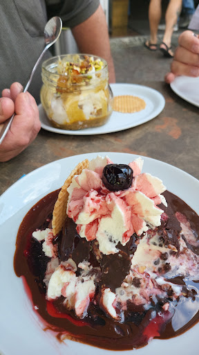Pistazieneis war nicht grün und schmeckte nach Haselnuss. Auf Nachfrage ob sie mir vllt aus Versehen ein Haselnuss Eis gegeben hätten, wurde ich darüber aufgeklärt, dass es deshalb nicht grün wäre, weil sie keine künstlichen Zusatzstoffe reinmachen. Doof ist nur, dass Pistazie von Natur aus grün ist wegen dem hohen Chlorophyll-gehalt. Wenig grün ist also wenig Pistazie. Wenn es dann auch noch nicht nach Pistazie schmeckt, ist die Sache ja irgendwie klar.
