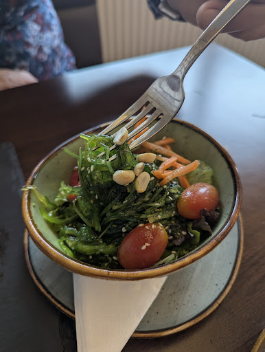 Den Auftakt machte ein herrlich frischer Seetangsalat, dessen feine Sesam- und Nussnoten eine harmonische Balance zwischen Umami und leichter Süße schufen. Die knackigen Cherrytomaten und feinen Karottenstreifen verliehen dem Gericht eine angenehme Frische, während geröstete Kerne für den letzten aromatischen Schliff sorgten.