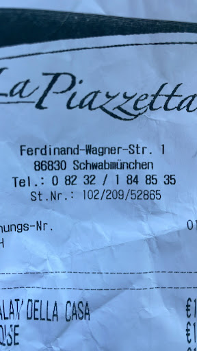 Read moreVery nice place. Good food. Good prices. Only thing I did not like was the waiters. They play this annoying 'act' , speaking italian etc. Too friendly and too cheesy for my taste. But 5 stars well deserved for this place as food and pricing is all that matters in the end. I've eaten pizza in all places serving it in Schwabmünchen and La Piazzeta's was by far the best. Oh one more annoying thing , they only take cash which is...