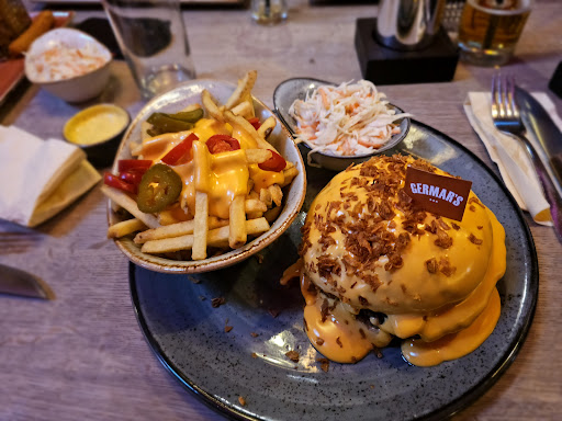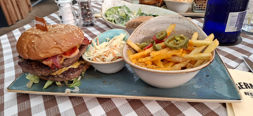 Read moreDas Positive zuerst; Bedienungen freundlich und aufmerksam, Ambiente schön und gemütlich. Vom Essen waren wir leider enttäuscht. Wir waren das erste Mal hier, deswegen kann ich die anderen Speisen nicht beurteilen, ich bewerte heute den Classic Burger im Menü. Nach all den positiven Bewertungen hatten wir natürlich sehr hohe Erwartungen. Diese wurden leider nicht erfüllt. Der Burger war kalt, das Brot trocken, das Fleisch zu fest und absolut nicht saftig. Die Pommes waren grenzwertig kalt, wenn man schnell war, konnte man sie essen. Die Süßkartoffelpommes waren noch kälter und nicht knusprig, dafür aber viel zu dunkel. Sie wurden anstandslos ausgetauscht. Danach waren sie zwar heiß, aber immer noch viel zu dunkel und total „lätschat“. Der Cole Slaw war lecker. Das Restaurant war relativ leer, daran kann es schon mal nicht gelegen haben. Zur Nachspeise hatte ich einen Blueberry Cheescake. Dieser hat leider auch absolut nicht geschmeckt. Er hatte irgendwie den Geschmack von altem Bratfett. Diese Meinung teilten auch meine beiden Freundinnen. Die Preise wären absolut in Ordnung, wenn die Qualität stimmen würde. Jede billig Lidl Tüte Süßkartoffelpommes aus der heimischen Fritteuse schmecken tausend mal besser und knuspriger. Ich entschuldige mich an dieser Stelle, dass ich nicht direkt im Restaurant was gesagt habe. Wir werden auch nochmal hingehen und den anderen Speisen eine Chance geben. Vier Sterne gibt es trotzdem, um niemanden abzuschrecken, jeder hat eine andere Erwartung und einen anderen Geschmack. Deswegen muss man sich hier selbst ein Bild machen. Denn ganz vielleicht hatten wir auch nur einen schlechten...