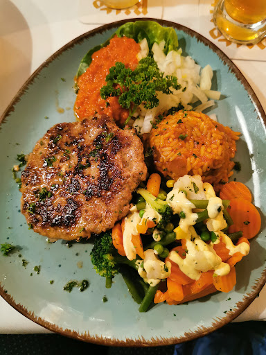 Read moreEssen war ok. Definitiv nichts herausragendes und nichts, was zu einen erneuten Besuch bewegt. Ajvar nachbestellt und keine Info, dass es 3,50 Euro kostet. Gehört bei den Restaurants die ich kenne zum Service, wenn man eine Grillplatte für zwei Personen bestellt... Dann gab es zu dem Ajvar (Größe einer Müslischale) nicht mal Brot dazu. Das Fleisch war zum größten Teil sehr trocken und nur lauwarm... Angaben welches Fleisch für Hackgerichte verwendet wird (Rind, Schwein, Lamm) fehlen leider auch. Traditionelle Speisen, die normalerweise aus Rind und Lamm hergestellt werden, werden hier aus Rind und Schwein hergestellt. Das TK Gemüse war völlig geschmacklos und wurde mit einer fertigen Sauce Hollandaise serviert. Service war auch nicht so toll. Zwei junge Leute: einer, der oft das Handy in der Hand hatte und eine, die man auf leere Gläser etc aufmerksam machen musste. Der seperate Raum im Keller war sehr kühl und wirkte wenig einladend. Alles in allem war es eher...