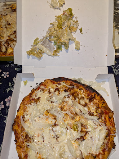 Read moreEine Absolute Frechheit !!! Ich habe eine pizza bestellt, doch sie kam mit komplett anderen Belegen an. Nachdem ich es dem Mann mit der Glatze der vermutlich der Inhaber ist gesagt habe, habe ich nach ziemlich langer Wartezeit endlich mal mein Essen bekommen. Mein Freund der hähnchen bestellt hat, bekommt ein ganz trockenes Hähnchen, doch laut dem Inhaber soll es ganz frisch sein welches ich sehr stark bezweifele. Salat bestellt ohne Tomaten doch es wurde nicht berücksichtigt Abgesehen davon ist das Lokal wirklich nicht amüsant und die Toiletten stinken wie, ein dixi Klo. Den einen Stern haben sie nur verdient wegen der netten und sehr sehr freundlichen und lieben jungen Dame bei Bedienung die nur Wochenends arbeitet. Ansonsten ist es eine reine katastophe. Da muss mal ganz dringend das Gesundheitsamt. Aber sehr Dringend !!! Der Laden muss...