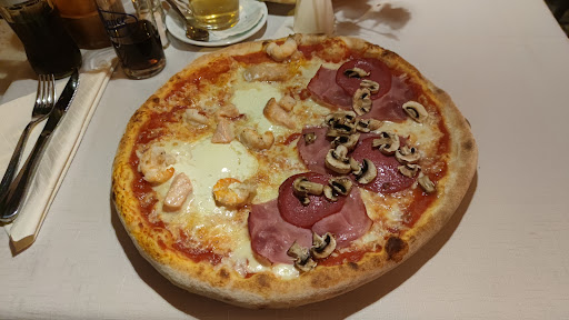Read moreSind heute Abend spontan in der Lokalität eingekehrt und haben ohne Reservierung gleich einen freien Platz bekommen. Das Lokal besitzt ein schönes Ambiente, auf dem Weg zu unserem Platz sind wir an der offenen Küche vorbeigelaufen, welche sehr sauber und ansprechend aussieht. Das Personal ist sehr freundlich und zuvorkommend, darüber hinaus aufmerksam und schnell. Ich habe mich für eine "Pizza halb und halb" entschieden mit einer Hälfte "Roma" und einer Hälfte "Rossini". Die Pizzen werden frisch im Holzofen gebacken und für die Gerichte werden offensichtlich frische und auch hochwertige Zutaten verwendet. Die Pizza ist sehr groß(~34cm) und gut belegt. Für meinen Geschmack war die Pizza etwas zu käselastig und damit ein wenig zu fettig, dafür gibt es leider einen Stern Abzug.