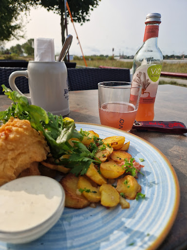 Diese Lokalität hat eine einmalige und konkurenzlose Lage, auf der Weserinsel Harriersand, Blick auf die Weser, grüne und sehr ruhige Umgebung. Man sitzt auch draußen gut, es wird ein bequemes Kissen gereicht. Das Angebot an Getränken ist in Ordnung, nicht spektakulär, normal eben. Das Angebot an Speisen ist begrenzt, das muss nichts Schlechtes sein. Hier sind allerdings zwar auch die Preise moderat, die Portionen aber noch moderater. Ich hatte einen kleinen Salat, der war wirklich winzig. Drei Blätter Frisee, ein Hauch Tomate, ein paar Paprikawürfelchen, ein Löffelchen aus der Thunfischdose, ein paar Krümelchen Feta und etwas sehr saure Essigsauce. Dazu gabs zwei hauchdünne Scheibchen zähes Baguette. Keine Spur von Salz oder Pfeffer. Und hier noch ein kleiner Tipp: Die Süßkartoffelpommes sind ziemlich dunkel und etwas bitter, besonders da wo sie geschwärzt wurden, und echt richtig wenig. So eine kleine Portion habe ich noch nicht gesehen und ich bestelle sowas häufig. Normalerweise meckere ich nicht, hier kann ich nicht anders. Gäbe es vor Ort...