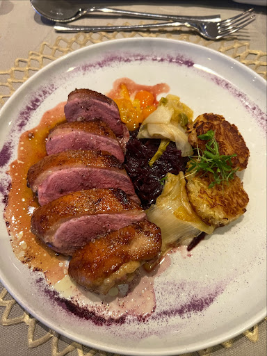 The chef should be commended for an extremely beautiful, tasty and wonderful meal. I had the duck which was very well seasoned, buttery and melt in your mouth. My partner had the steak that she thoroughly enjoyed as well.