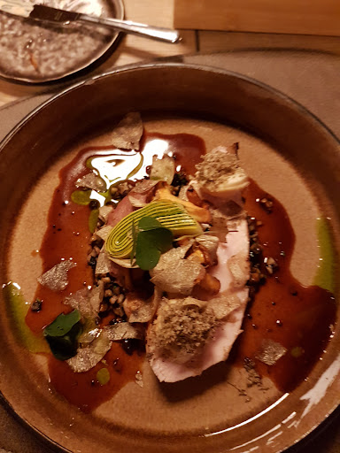 Read moreEin ganz besonderer Abend, der unvergesslich bleiben wird. Etwaige "Schwellenängste" beim Betreten des (Land-)Gasthauses wären in Sekundenbruchteilen verflogen, so freundlich und entspannt wird man empfangen. Entsprechend geringe Personenzahl vorausgesetzt, hat man sogar eine kleine Tischwahl. Ein wenig Zeit sollte man mitbringen, um das 5 Gang Menü mit Weinbegleitung zu genießen. Der Gruß aus der Küche gibt schon einen Vorausblick auf das geleistete Handwerk und die kreative Kunst im Spiel der Aromen und verschiedenen Texturen. Jeder Teller ist ein kleines Kunstwerk und wirkt doch wie fast beiläufig angerichtet. Da wird kein Garpunkt verpasst, da gibt es nicht zu wenig von dem und nicht zu viel vom anderen. Klar, dass saisonale Produkte, wie der Steinpilz im Herbst, eine Rolle spielen, jedoch nicht dominant und selbst der Trüffel kommt sehr angenehm unaufdringlich daher. Roastbeef und Ochsenbacke können tatsächlich wunderbar harmonieren, Mango und Thunfisch-Variationen geben eine überraschende, fruchtig frische Kombi im Mund. Natürlich ist jeder Teller ausgezeichnet und doch hat vielleicht jeder Gast einen Lieblingsteller? Meiner war die Variation von der Entenleber mit Zwetschge und dort ganz besonders das Entenleber-Parfait, das mich fast hätte um einen Nachschlag bitten lassen - grandios! Auf nicht minder hohem Niveau war die Weinbegleitung zum Menü: perfekte Unterstreichung und Hervorhebung der Aromen der einzelnen Gänge, auf den Punkt ausgesucht. Alles in allem keinerlei Schwächen an dem Abend, der Gast ist und bleibt König und das bei einem Preis-Leistungs-Verhältnis, nach dem man lange suchen muss, um...