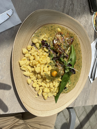 Das Kalbsschnitzel eher auch nicht zu empfehlen was Preis/Leistung angeht: relativ kleine Portion Fleisch, Fleisch etwas zu dick geschnitten, Panade gar nicht luftig sondern eher zu sehr stark angedrückt. Geschmacklich ok, aber hätten uns auch da einen für echtes Wiener Schnitzel Butter-lastigeren Geschmack gewünscht.