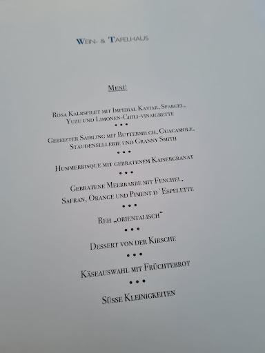 Read moreWir waren am 14.06.22 zum Einstieg in unseren Kurzurlaub nach unserer Hochzeit im Wein- und Tafelhaus in Trittenheim. Ich hatte zuvor Kontakt per E-Mail für eine Reservierung, die sehr nett beantwortet wurde. Beim Eintreffen im Restaurant wurden wir herzlich begrüßt und uns wurde der beste Tisch inklusive Ausblick auf die Mosel übergeben. Wirklich sehr zuvorkommend! Wir hatten uns bereits im Vorfeld über das Menü auf der Internetseite informiert und haben deshalb keinen Blick mehr in die Karte geworfen. Es sollte das 6-Gang Menü sein. Nach den ersten beiden Gängen fiel uns eine geänderte Gangfolge und unterschiedliche Zutaten auf. Nachgefragt bei der Bedienung ergab sich, dass das Menü zwar im Restaurant bereits geändert wurde, aber online noch das Alte zu finden war. Wir hätten ja auch noch einmal in die Karte schauen können, weshalb wir dies gar nicht negativ bewerten wollen. Es geht ja viel mehr um Geschmack und Service. Hier müssen wir leider einige Sterne abziehen. Die ersten beiden Gänge sahen sehr vielversprechend aus. Das rosa Kalbsfilet war perfekt gegart, aber leider haben uns Würze und Geschmack gefehlt. Auch ging der Imperial Kaviar im Ganzen ziemlich unter. Ein ähnliches Geschmacksbild ergab sich beim gebeizten Saibling. Auch hier fehlte irgendwie Tiefe und Würze, die man durch das Beizen erwartet hätte. Die Buttermilch nahm dem Fisch seinen natürlichen Eigengeschmack. Der Granny-Smith Apfel gab dem Ganzen aber eine schöne Frische und war filigran geschnitten. Die Hummerbisque mit Kaisergranat war gut abgeschmeckt, hatte aber leider eine sehr starke Bitternote. Das haben wir auch dem Service über angemerkt, der ein wenig genervt die Meldung an die Küche weitergeben wollte. Der Kaisergranat war im übrigen perfekt gebraten und äußerst lecker. Die gebratene Meerbarbe wurde auf der Hautseite angebraten und war dadurch noch perfekt glasig. Hier stimmte auch der Salzgehalt und die unterschiedlichen Texturen des Fenchel waren genial ausgearbeitet. Definitv einer meiner Highlight-Gänge. Unser persönlicher Tiefpunkt kam aber leider mit dem Fleischgang. Es sollte orientalisches Reh geben. Zuerst das positive: geniale kleine Wirsingroulade und schön abgeschmeckte, kräftige und dunkle Soße. Das Reh ist blöderweise umsonst gestorben. Wir sind kein Fan von Sous-Vide, aber das ist nunmal Geschmackssache. Allerdings hat das langsame Garen im Wasserbad einen unglaublich starken Lebergeschmack aus dem Fleisch gekitzelt. Nicht falsch verstehen, ich mag Leber. Aber eben nicht, wenn regionales Wildfleisch auf der Karte steht. Da erwarte ich dann Wildnoten. Leider sehr enttäuschend. Zum Glück wurde das 6-Gang Menü vom Nachtisch noch eingefangen. Das Dessert von der Kirsche war Top! Nicht zu süß, schön fruchtig und gut abgestimmt. Alles in allem war es ein recht durchwachsenes Menü. Sehr schade, dass der verantwortliche Koch nicht noch kurz am Tisch vorbeigeschaut hat. In meinen Augen gehört das in einem gehobenen Restaurant dazu, vorallem wenn an einem Abend "nur" 5 Tische besetzt sind. Der Service war insgesamt in Ordnung. Die Ehefrau des Inhabers war sehr zuvorkommend und konnte eine sehr gute Weinempfehlung zum Reh darbieten. Die beiden anderen Servicekräfte waren an diesem Abend ein klein wenig verwirrt bzw. zerstreut. So wurde beispielsweise 3 mal der Aschenbecher abgeräumt (wir saßen ja im Außenbereich) und es musste jedesmal wieder nach einem neuen verlangt werden. Vermutlich haben wir einfach nur einen nicht ganz so guten Tag in der Küche erwischt. Denn die vorherigen Bewertungen lassen das definitv auf sich schließen. Allerdings sollte bei einem so hohen Menüpreis die Qualität der Speisen und ihr Geschmack immer stimmen. Wir können das Wein- & Tafelhaus deshalb nur bedingt...