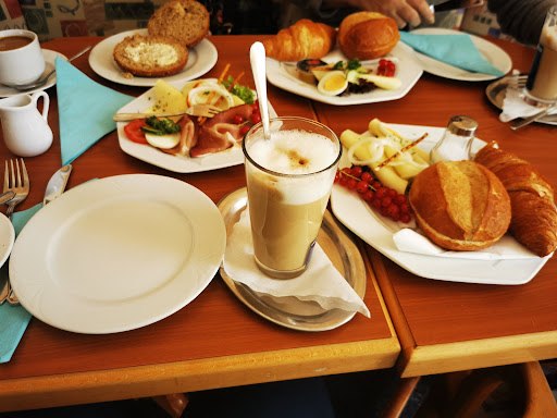 Read moreDas Frühstück kann man bzgl. Preis und Qualität als lediglich durchschnittlich bezeichnen. Der Cappuccino war leider extrem bitter, der Latte Macchiato auch eher zu stark. Das Interieur mit goldfarbenen Deckenleuchten, teils verspiegelter Decke und der Möbelierung ist original 80er Jahre. Dieses Cafe ist wohl eher bei der älteren Generation beliebt. Uns hat es...