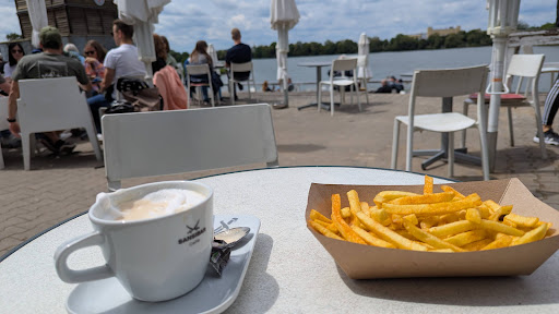 Read moreSchön, dass es am Baggersee eine Location gibt, bei der man sich im Sommer, wie im Winter, hinsetzen kann, um ein Getränk oder einen kleinen Imbiss zu genießen. Die Auswahl ist begrenzt, aber dass ist schon in Ordnung. Zusätzlich wird am Wochenende und an Feiertagen Frühstück angeboten. Tip: Vorreservierung ist sinnvoll, geht auch einfach über die Homepage. Keine Bedienung, man muss sich an der Ausgabe anstellen. Im Sommer, bzw. schönen Wetter kann man draußen sitzen. Im Winter sitzt man im Cafe. Sitzmöglichkeiten sind begrenzt. Service ist flott und freundlich, trotzdem muss man mit gelegentlichen Wartezeiten rechnen. Abzüge gibt's für die Lautstärke im Cafe. Wenn das Cafe voll ist, kann es schon mal unangenehm werden. Trotzdem eine klare...