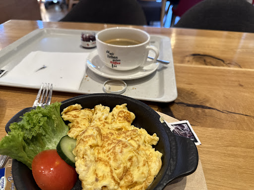 Read moreFiliale Carl-Benz-Straße, Samstag Nachmittag Sanitäranlagen schmutzig, keine Seife Keine Kaffeelöffel da Die letzten 2 Kuchengabeln beide schmutzig, keine Entschuldigung, nur wortloser Ersatz. Ein Bekannter der Angestellten, der nicht Personal war, hielt sich hinter der Theke auf und aß dort Leberkäsebrötchen. Wir bestellten auch eins und ein Stück Kuchen. Die Angestellte wollte beides auf denselben Teller geben.