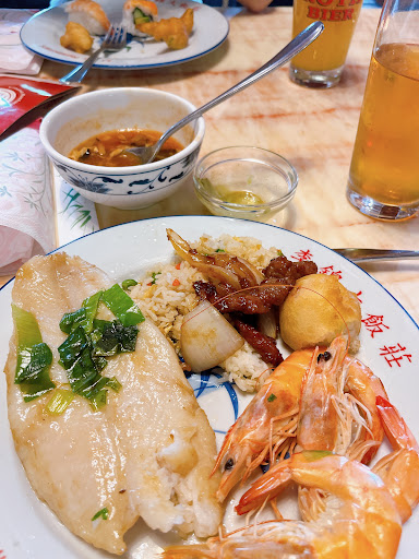 Read moreWaren heute spontan dort nachdem unser Lieblingschinese wohl den Koch gewechselt hat, und der zweite Chinese einen spontanen Ruhetag eingelegt hat. Kannten das Lokal noch von früher, aber nachdem sich die alten Besitzer zurück gezogen hatten war es zwischenzeitlich nicht mehr gut. Vor ein paar Monaten haben dann die Besitzer gewechselt. Die Einrichtung ist noch die gleiche, alles ein bisschen dunkel aber trotzdem typisch deutscher Chinese. Die Toiletten sind sauber, könnten aber mal eine Renovierung vertragen. Das Personal ist sehr freundlich und aufmerksam, benutze Teller werden gleich abgeräumt und man darf sich einen neuen nehmen. Auch die Getränke waren gleich am Tisch, obwohl das Lokal gut besucht war. Wir haben vom Buffet gegessen, obwohl die Preise für die Mittagsgerichte zwischen 6,30 und 8,20 sehr günstig sind. Das Buffet ist optisch viel kleiner als bei unseren anderen Chinesen, aber von der Auswahl fast ebenbürtig. Es gibt die Pekingsuppe, diverse Sushi, Salatbuffet, Kuchen, Eis, ein bisschen Obst, Nachtisch, einen Schokobrunnen, diverse Saucen, Frittiertes und mind. 7 verschiedene Gerichte. Alles ist in relativ kleinen Behälter, sodass diese reichhaltige Auswahl auf dem kleinen Büffet Platz hat. Keiner der Behälter war während der knapp 2 Stunden die wir dort waren länger als 2 Minuten leer, ständig wurde aus der Küche frisches, heißes Essen nachgefüllt. Die einzelne Gerichte schmeckten alle verschieden und wirklich ausgezeichnet. Das hat mich an die alten Zeiten erinnert, als die Familie Lo das Restaurant vor mehr als 30 Jahren eröffnet hat. Ich kann auch kein Gericht besonders hervor heben, jedes war auf seine Art gut und ich würde auch jedes a la carte bestellen. Einziger Kritikpunkt, die Suppe könnte m.E. ein wenig mehr Pep vertragen und an manchen Eissorten hatten sich durch die offene Lagerung ein paar Eiskristalle abgesetzt. Und der eigentlich obligatorische Pflaumenwein davor/danach hat gefehlt. Der Preis für unser Essen incl. Getränke lag unter 60€ (Buffet 10,90€ Bier 3€). Da gebe ich schon mal gerne deutlich mehr als 10% Trinkgeld. Wir werden wieder kommen und können das neue Yoyo nur...