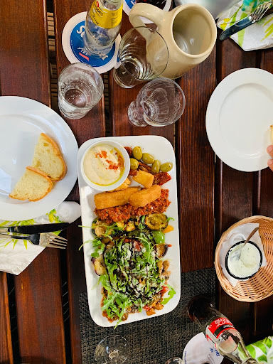 Wir waren zu siebt und wurden an einem Tisch zwischen Kasse und Durchreiche zur Küche in dem ohnehin schon sehr vollen (und sehr hell beleuchteten) Speiseaal platziert. Es war dermaßen eng, weder konnten wir komfortabel sitzen, noch konnten die Kellnerinnen an uns vorbei gehen. So mussten wir mit den Stühlen ständig vor und zurück rücken, gerade für die zwei Schwangeren von uns eine Tortur. Es dauert gute zehn Minuten, ehe wir überhaupt eine Speisekarte bekamen, weitere fünf bis wir unsere Getränke bestellen konnten. Nach ca 30 Minuten konnten wir unseren Durst dann endlich stillen. Direkt wurde uns ein Brotkörbchen mit Dip gereicht. Hätte ich da doch bloß schon gewusst, wie lange wir noch aufs Essen warten müssen.... Es war warm, voll und stickig und vor allem laut! Die Akustik ist wirklich miserabel. Die Tische waren vorab mit Wein- und Wassergläser gedeckt, was natürlich wirklich hübsch aussieht, aber die Bedienung nur aufhält, wenn man die Gläser nicht nutzt und sie sie erstmal mühevoll abräumen und durch die engen Gänge zurück zum Schrank tragen muss. Überflüssig! Nach 1 3/4 Stunde kam dann endlich unser Essen. Eine absolute Frechheit. Ja, der Laden war ausgebucht, ja, es war Freitagabend. Dennoch ist die Wartezeit wirklich unverschämt. Kleiner Tipp: Man könnte den Salat vielleicht vorab reichen und nicht erst beim Essen. So könnte man dem Gast die Wartezeit versüßen und den Hunger etwas stillen.