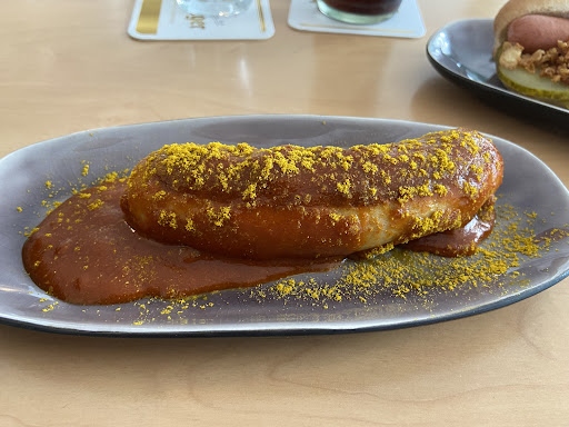 Die Currywurst hat mir irgendwie nicht zugesagt. Die Soße war scharf, aber wie in anderen Rezessionen zu lesen eher ein Ketchup. Und so kam es mir auch vor. Ein scharfer Ketchup ohne das besondere was ich hier erwarte wenn ich Coerri mit Curry verbinden soll. Die Wurst war geschmacklich einfach nichts. So weiter es in den Norden Deutschlands geht umso uninteressanter werden Würste. Hier nicht gewürzt und eine wirklich einfach Schweinswurst. Labrig in der Konsistenz und es macht keinen Spaß so etwas zu essen. Hier kann ich die Rezessionen nicht nachvollziehen von den Kunden die hier ihre beste Currywurst gefunden haben. Aber vllt passt die Wurst einfach in die Gegend, wer weiß. Was ich noch hervorheben möchte: Der Laden ist vom Aussehen wirklich Schick und die beiden Mädels die gearbeitet haben waren sehr freundlich und zuvorkommen. Die Preise waren generell in Ordnung.