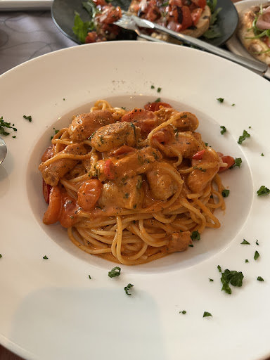Wir bekamen schnell eine Tisch, und wir wurden sofort nach GetrÀnken gefragt. Wir bestellten ein Alster, eine Flasche Wasser und ein Glas Pinot Grigio. Serviert wurde eine Flasche Wasser und ein halber Liter Wein mit zwei GlÀsern!! Ich fragte den Kellner was das soll? Da habe ich mich wohl vertan, aber ich hoffe das ist okay so?!?! Toller Start.