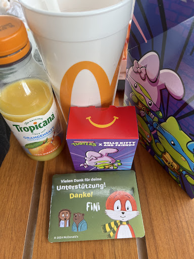 Read moreGastronomie Dienstleistungen, also die Bestellungsannahme, werden auch hier mittels Bestellterminal ausgelagert. Es gibt allerdings dadurch keine Vergünstigungen oder sonst welche Vorteile für den Kunden , sondern einfach nur Profitmaximierung für das Restaurant, das Personalkosten sparen kann. "ich kassier hier nur ab", heißt es am Tresen. Diese Terminals bringen dem Kunden keinerlei Vorteile. Wobei diese mMn an einem Flughafen durchaus Sinn ergeben könne. Am Terminal : Nach jedem Artikel wird man vollgespammt und man soll noch mehr kaufen. Ohne Sinn und Verstand, einfach nur störend. Dabei dauert es an diesen Terminals sowieso schon viel länger, denn einige Kunden fremdeln ein wenig mit Der Technik oder sind vom überbordenden Angebot überfordert. die Terminals stehen direkt im Eingangsbereich, es ist ein regelrechtes Gedränge, zeitweise. Nicht klug platziert. 1 von 4 Geräten ist nicht nutzbar. Noch mehr Gedränge. Das essen ist bekanntermaßen ungesund und wenig nahrhaft. Die Burger Patties sind zudem mittlerweile sogar so dünn, dass es sich tatsächlich einen double bigmac gibt (4 patties!!) damit ist das Nettofleischgewicht wieder beim Niveau aus dem Jahr 2000. Von einem normalen bigmac allerdings. So zumindest mein subjektiver Eindruck. Ich hatte einen royal ts (Tomate Geschmacklos und wässrig) sowie den besagten double big Mac. Habe immer noch Hunger und fühle mich abgezockt und bin genervt.