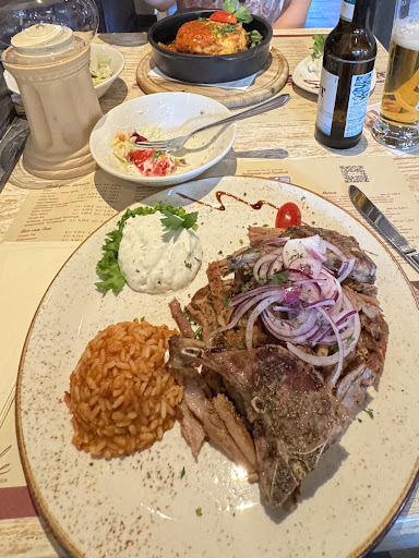 Read moreAuf der Durchreise kam mir die Idee mal wieder die griechische Küche zu genießen. Gesagt, getan riet mir mein Navi das o.g. Restaurant als nächstes Ziel. Ich steuerte es an und vor Ort viel mir gleich auf, dass es zur Mittagszeit gut besucht war. Trotzdem fand ich leicht einen Parkplatz. Nachdem ich einen Platz zugewiesen bekam, hörte man schnell von umlaufenden Gesprächen,dass die Belegschaft stark unterbesetzt sei, also stellte ich mich Moralisch auf etwas Wartezeit ein. Wartend mir das Interieur ansehend, fand ich einen guten Mix aus deutscher und griechischen Hause. Alles in allem gemütlich, drinnen wie draußen.